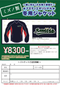 ※尚、冬場アミティエユニフォーム上に他のジャンパーなど着ての練習は不可となりますので予めご了承下さい。